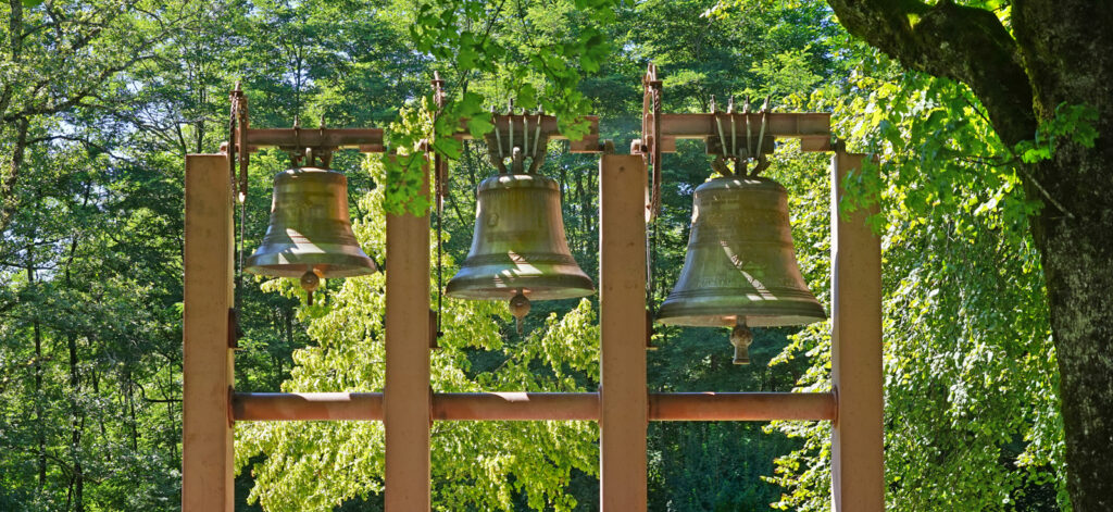 La plus grosse, nommée Marie – Margueritte est à la gloire de la sainte trinité. La deuxième s’appelle Jeanne – Bernadette – Adèle – Françoise. La plus petite coulée à Annecy se nomme Charlotte – Amélie – Yvonne – Marie en souvenir de la mère et de l’épouse de Le Corbusier. Elle a remplacé une cloche détruite par la guerre